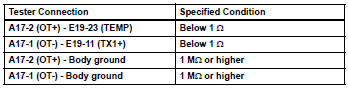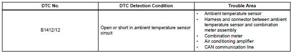 The air conditioning amplifier applies a voltage (5 v) to the ambient temperature sensor and reads voltage changes as changes in the resistance of the ambient temperature sensor. The combination meter sends the read signal to the air conditioning amplifier via can communication.