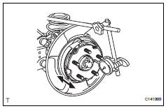 If the runout exceeds the maximum, change the installation positions of the rear disc and axle hub so that the runout will be as low as possible. If the runout exceeds the maximum even when the installation positions are changed, shave the rear disc. If the rear disc needs to be shaved to less than the minimum, replace the rear disc. If the rear disc is replaced, perform the runout inspection again. If the runout still exceeds the maximum, replace the hub and bearing with a new one.