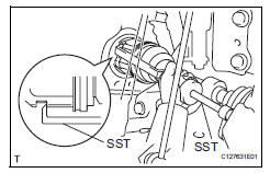 The hub bearing could be damaged if it is subjected to the vehicle weight, such as when moving the vehicle with the drive shaft removed. Therefore, if it is absolutely necessary to place the vehicle weight on the hub bearing, first support it with sst.