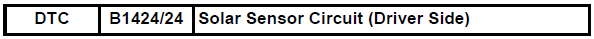 The solar sensor, which is installed on the upper side of the instrument panel, detects sunlight and controls the air conditioning auto mode. The output voltage from the solar sensor varies in accordance with the amount of sunlight. When the sunlight increases, the output voltage increases. As the sunlight decreases, the output voltage decreases.